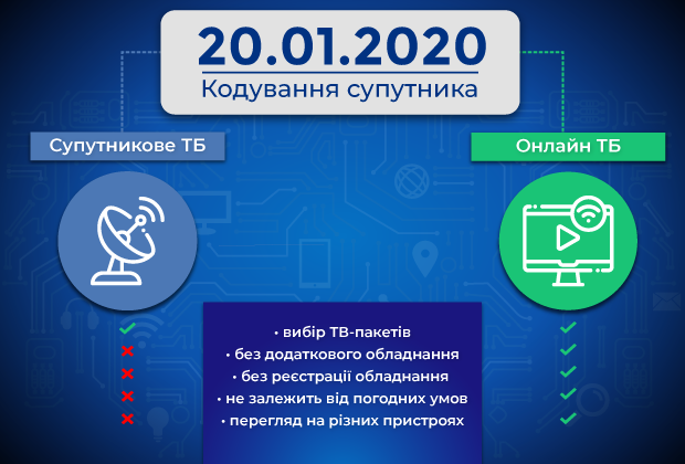 Новини супутникових телеканалів вже декілька місяців знайомлять глядачів з інформацією, що кодування супутникового сигналу комерційних українських телеканалів стрімко наближається. Так, частоти супутникових каналів для телеглядачів зашифрують вже у січні 2020 року.